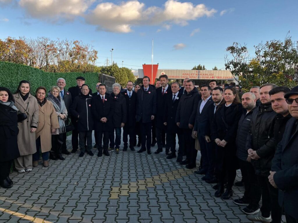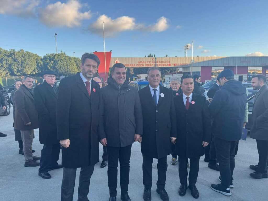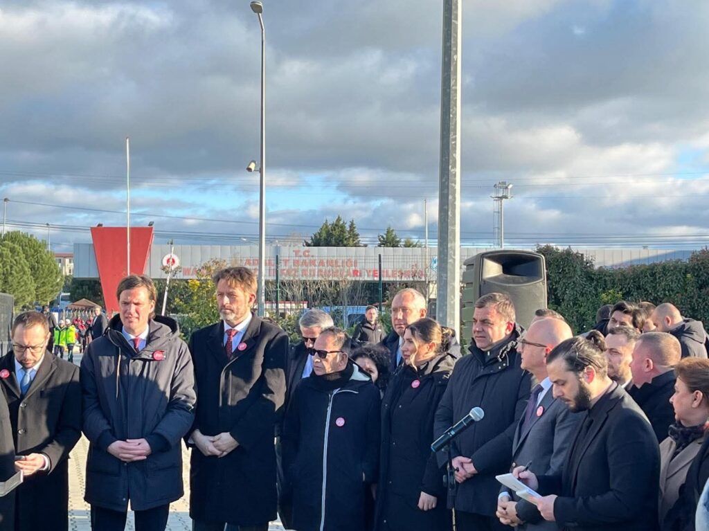 Heyet, demokrasi ve dayanışma vurgusuyla ikinci kez ortak bir basın açıklaması düzenledi.Dev Heyet Silivri’de Saf TuttuAvrupa’nın dört bir yanından gelen belediye başkanları ve üst düzey temsilciler, hukukun üstünlüğüne dikkat çekmek amacıyla Silivri Cezaevi önünde toplandı.