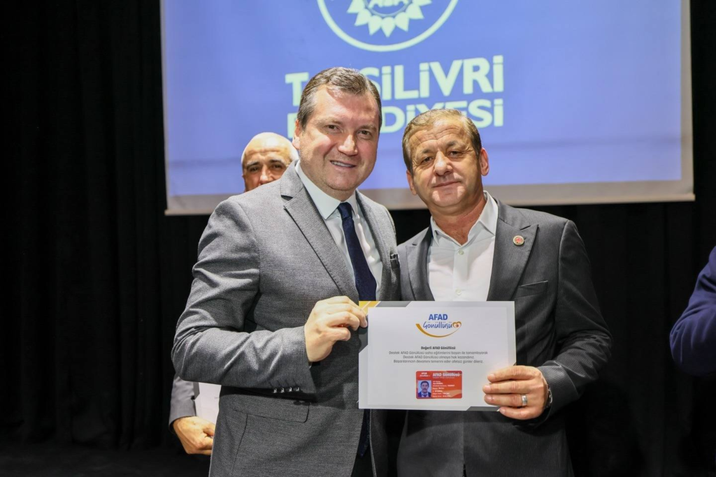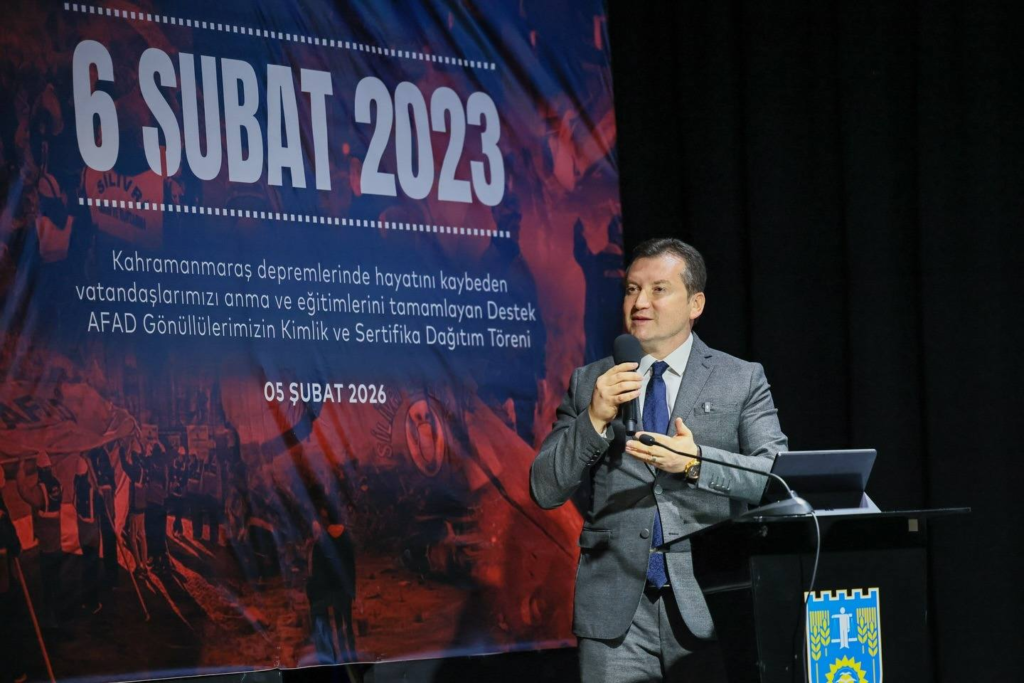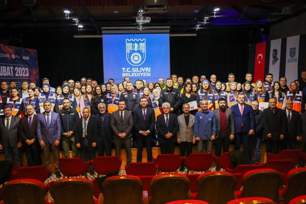 Silivri Belediye Başkanı Bora Balcıoğlu ve Kaymakam Tolga Toğan, 6 Şubat depremlerinde hayatını kaybeden vatandaşları anmak ve Destek AFAD Gönüllülerinin belgelerini teslim etmek için düzenlenen Kimlik ve Sertifika Dağıtım Töreni’ne katıldı.